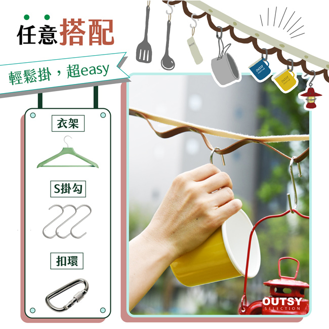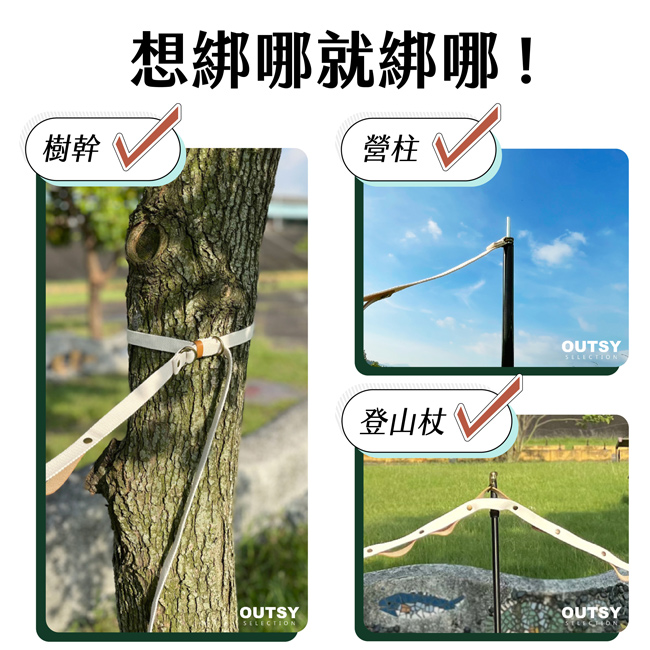 ◆掛繩任意掛 營柱、樹木、有高度的支架上