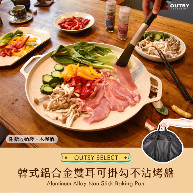 韓式鋁合金雙耳可掛勾31cm不沾烤盤