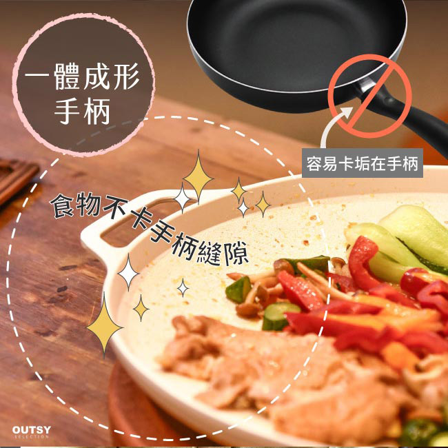 ◆一體成形食物不卡縫隙,物理不黏鍋方便好清洗