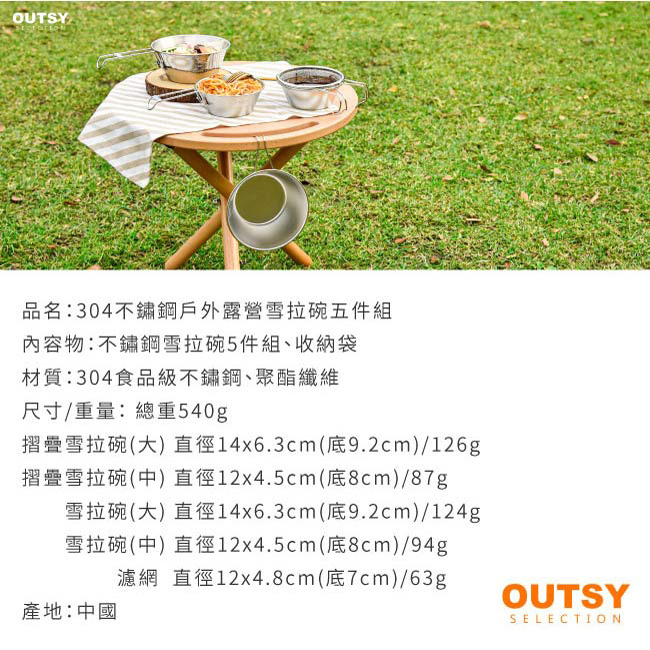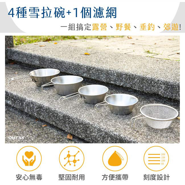 品名:304不鏽鋼戶外露營雪拉碗五件組