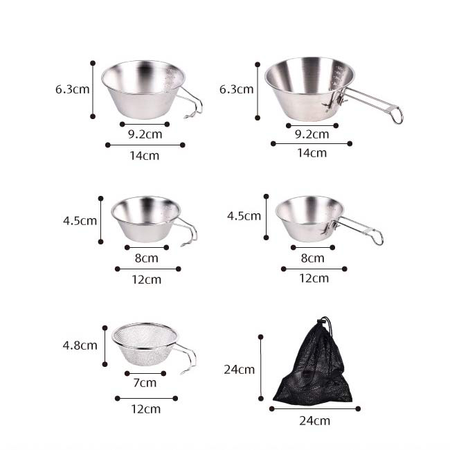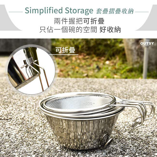 ◆4個不銹鋼杯碗+一個濾網 可多件疊成一件不占空間