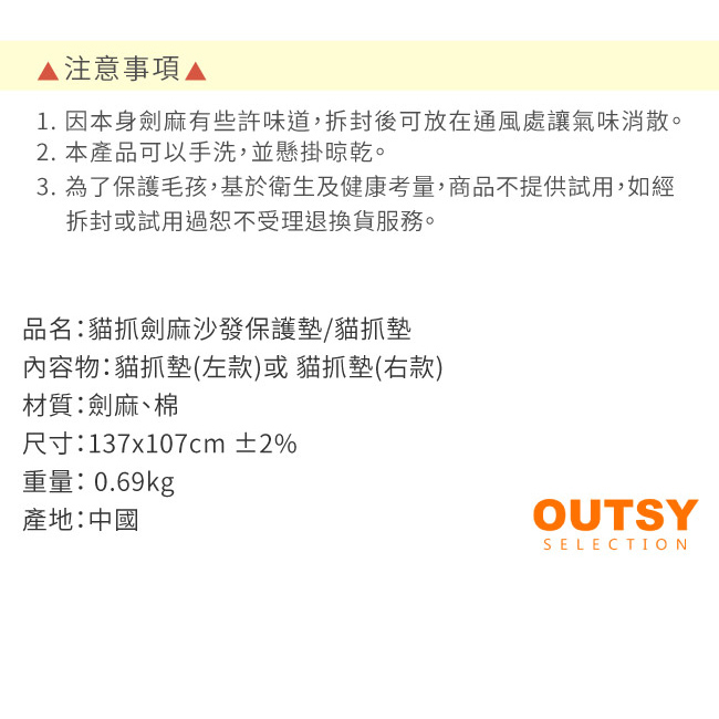 品名:貓抓劍麻沙發保護墊/貓抓墊