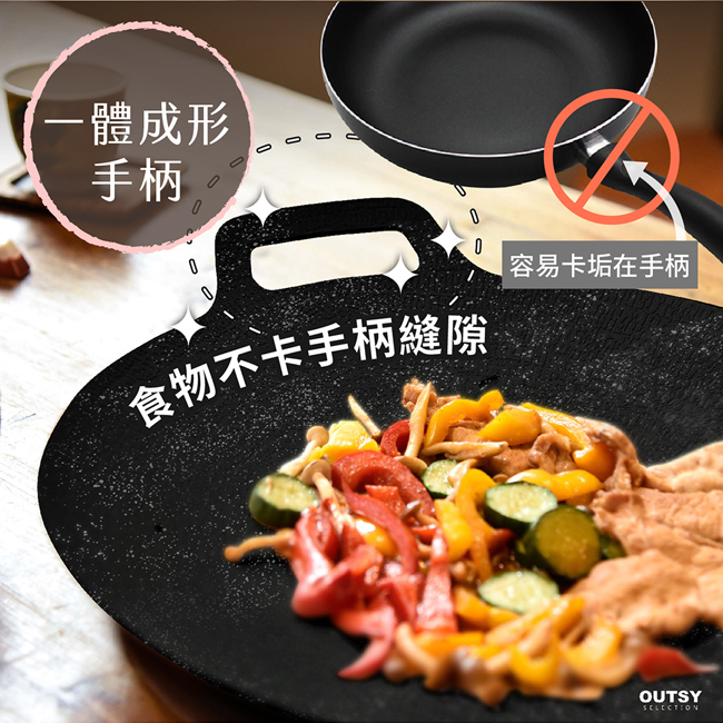 ◆均勻受熱少煙,食品級麥飯石材質不易沾黏