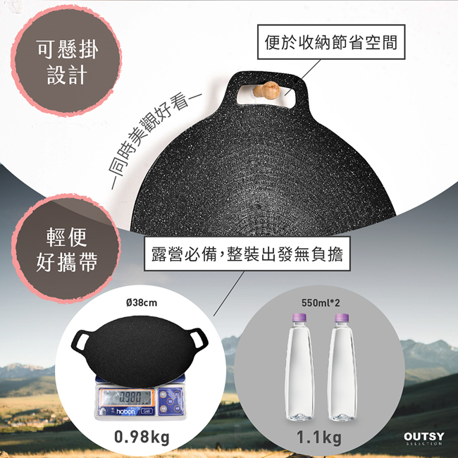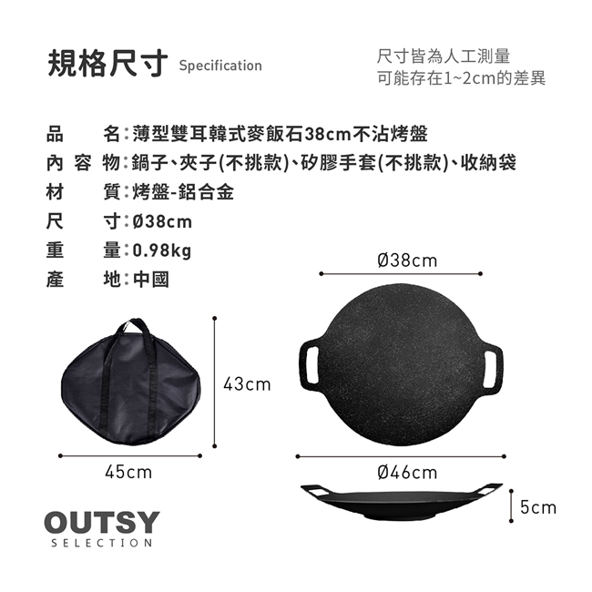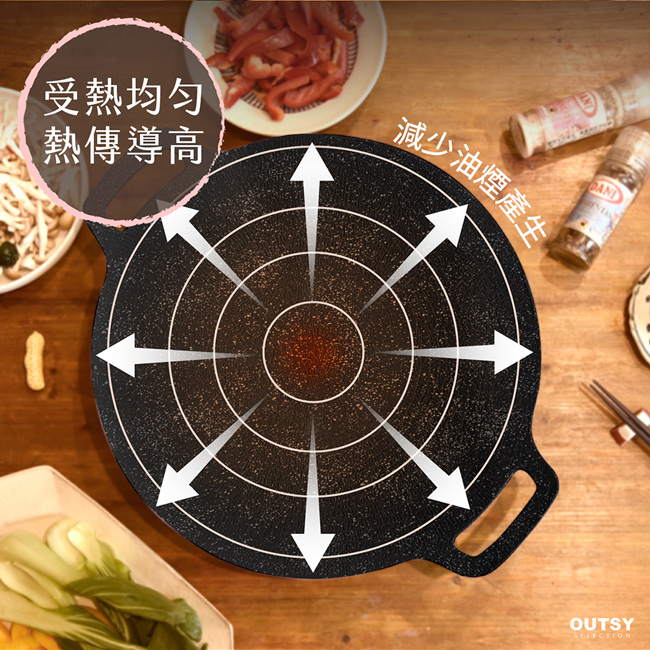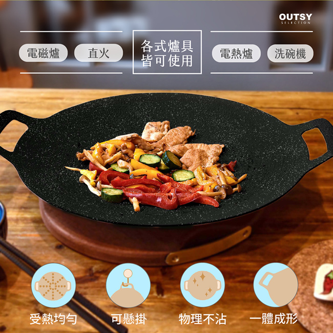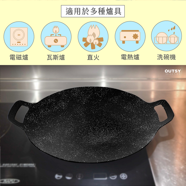 品名:薄型雙耳韓式麥飯石38cm不沾烤盤