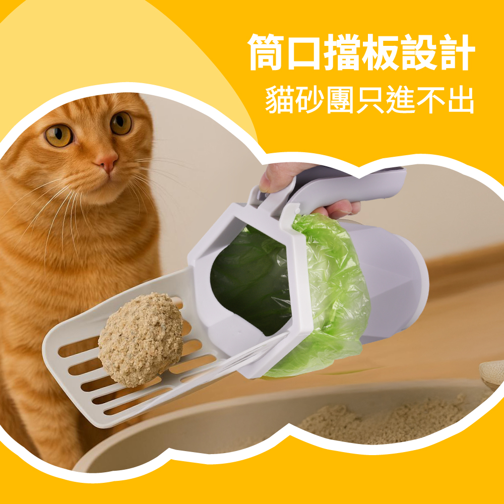 鏟砂同時完成貓砂團入袋 一氣呵成