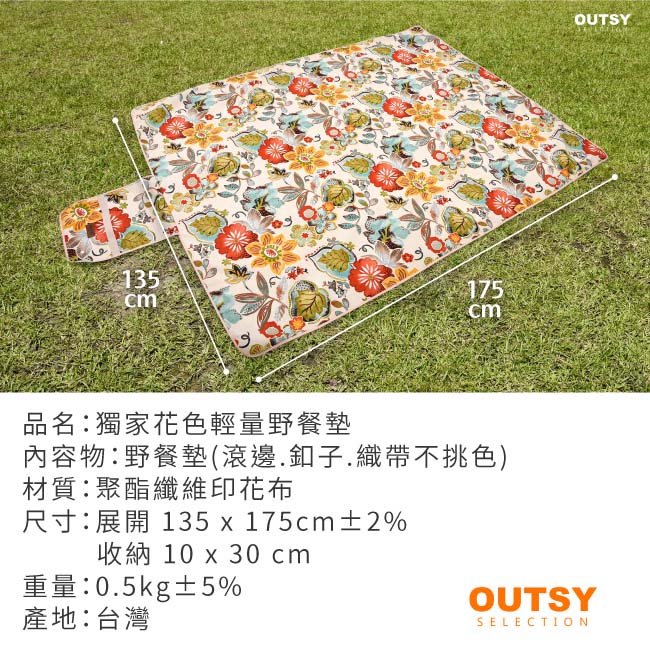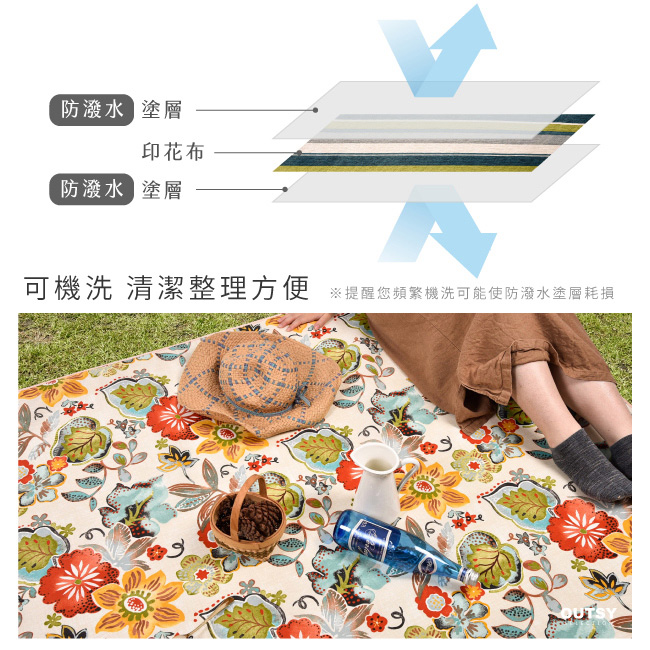 【OUTSY嚴選】獨家花布系列輕量野餐墊/地墊/沙灘墊