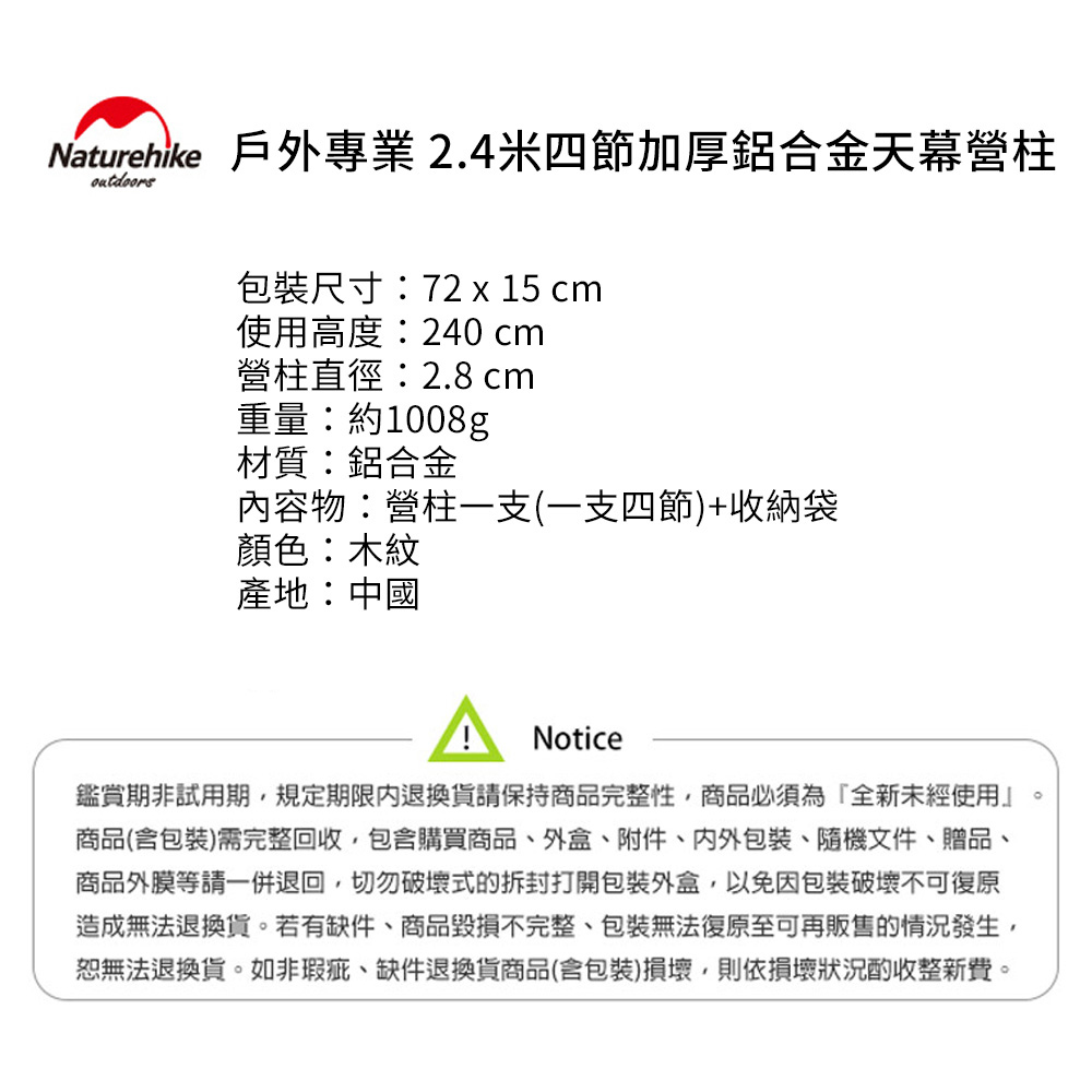 內容物:營柱一支(一支四節)+收納袋