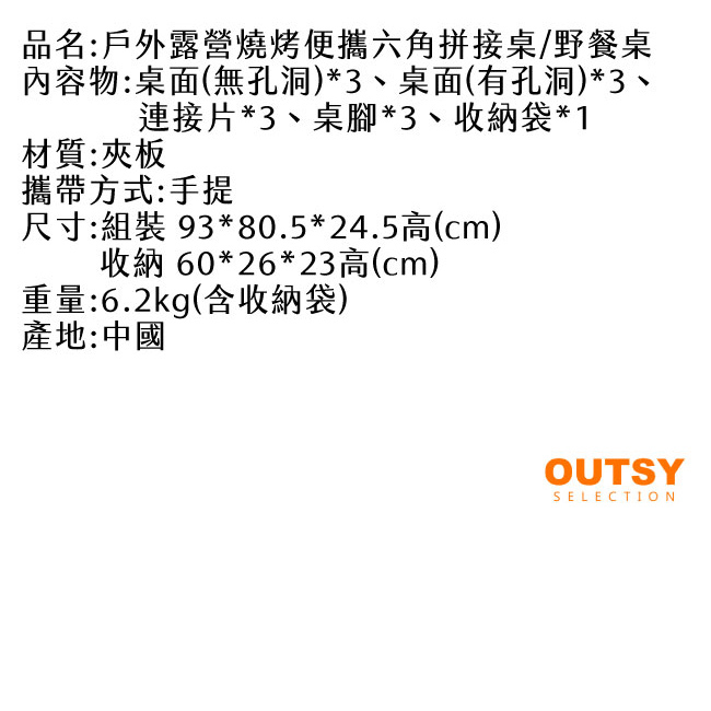品名:戶外露營燒烤便攜六角拼接桌/野餐桌