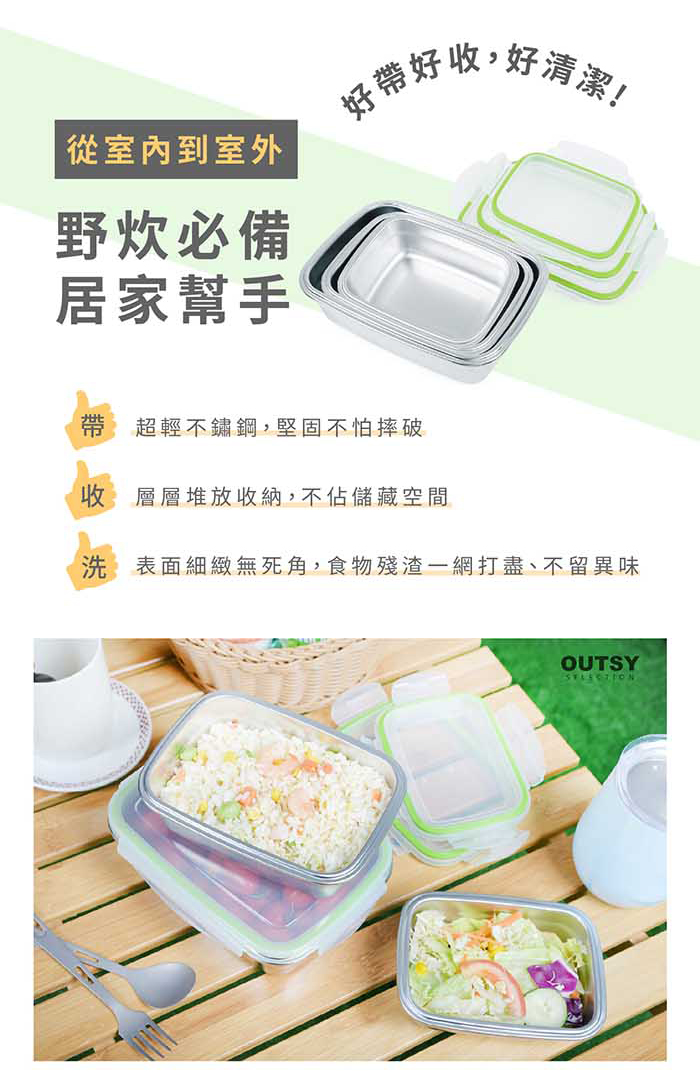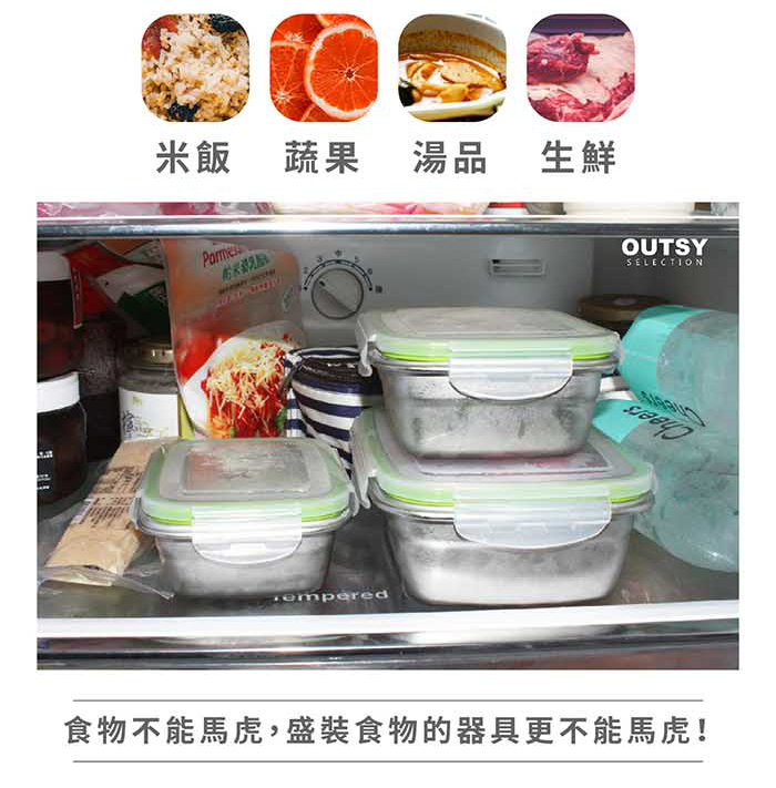 OUTSY嚴選 304不鏽鋼密封保鮮盒三入組